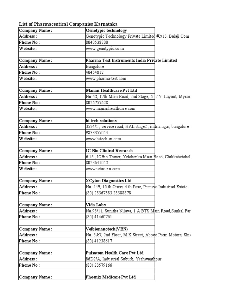 List Of Pharmaceutical Company In Karnataka Pdf Bangalore Industries
